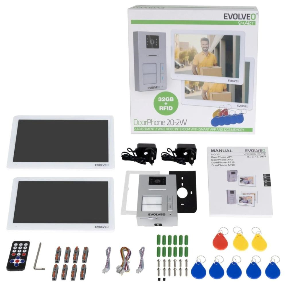 Videozvonec EVOLVEO DoorPhone 20-2W je pripravený na modernú dobu plnú chytrých technológií a internetu vecí. Každý z monitorov sa dá pripojiť k Wi-Fi a ovládať cez mobilnú aplikáciu Smart Life alebo Tuya. Vďaka tomu môžete dostávať notifikácie o návštevách priamo na svoj smartphone, komunikovať s návštevníkmi na diaľku, alebo dokonca odkiaľkoľvek na svete ovládať dverový zámok. Systém podporuje aj viacerých používateľov, takže každý člen rodiny môže mať prístup ku všetkým funkciám. A ak chcete mať prehľad o všetkom, čo sa za dvermi šuštlo, určite vás poteší aj možnosť ukladania záznamov z kamery do 32GB interné pamäte alebo na pamäťovú kartu (s kapacitou až 128 GB).