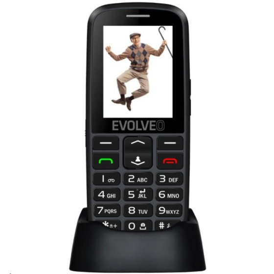 EVOLVEO EasyPhone EG, mobilný telefón pre seniorov s nabíjacím stojanom, čierny