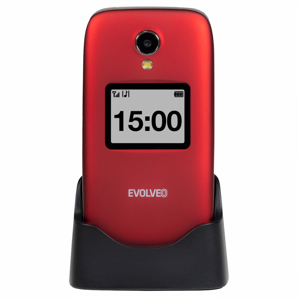 Popis EVOLVEO EasyPhone FS, vyklápací mobilný telefón 2.8" pre seniorov s nabíjacím stojanom (červená farba