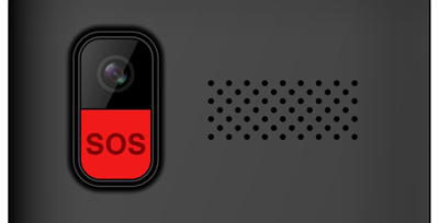 Na zadní straně telefonu se nachází SOS tlačítko, po jehož stisknutí telefon začne automaticky vytáčet předvolená čísla a odešle na ně nouzovou zprávu. Je možno zvolit až pět telefonních čísel, na které bude voláno a zaslána SMS.