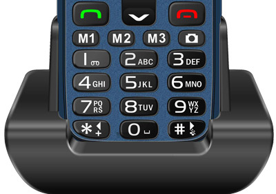 Telefon je dodáván s praktickým nabíjecím stojánkem, do kterého stačí telefon zasunout a nabíjení baterie se spustí automaticky, což usnadňuje a zpříjemňuje každodenní používání. Díky výdrži baterie až 8 dnů je telefon stále připraven k použití, aniž by uživatel musel často hledat zásuvku pro nabíjení