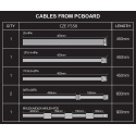 Kabeláž • 1x MB 20+4pin 450 mm • 1x cpu 4pin (8pin - 4+4) 450 mm • 1x VGA PCI-E 6+2pin 450 mm • 1x MOLEX, 450mm + MOLEX 150mm + MOLEX 150 mm + FDD 150 mm • 2x kabel S-ATA 450mm+ S-ATA150mm • černá barva