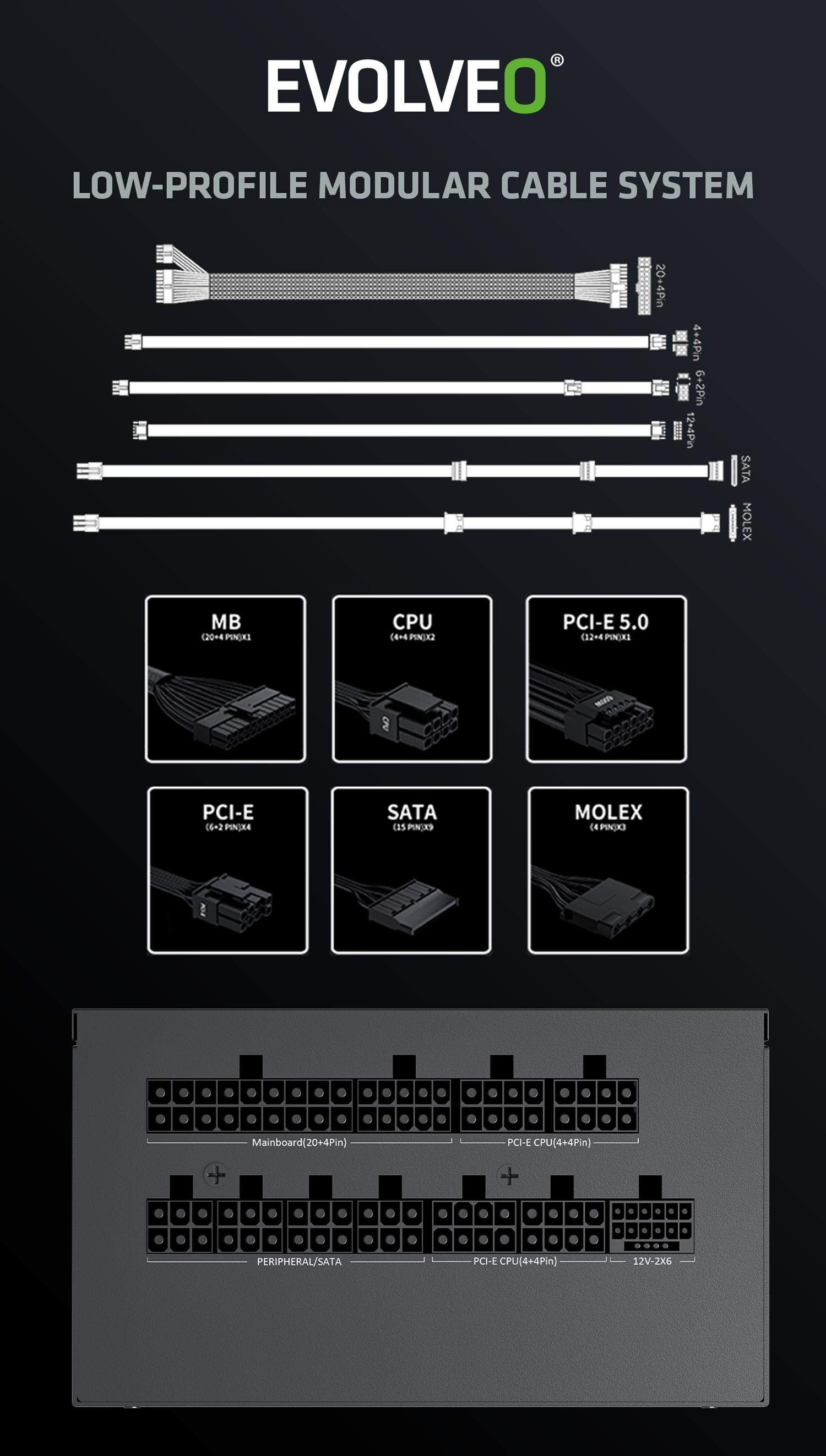 Popis EVOLVEO G850,850W,ATX 3.1,14cm,aPFC,80+GOLD,3YRW