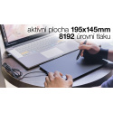 • Kompatibilita s Windows, Mac OS, Android • Pracovní plocha 195x145mm • Rozlišení 5080 DPI • Interaktivní kolečko • Bezdrátové pero s 8192 úrovní přítlaku • Implementované ovladače • Odezva 233 PPS • Napájení přes USB
