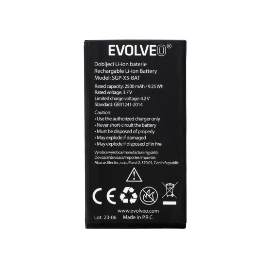 Originální baterie EVOLVEO Určena pro mobilní telefony: • StrongPhone X5 (SGP-X5) • Kapacita 2500