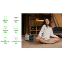 Nabíjecí stanice je kompaktní a snadno se přenáší. S její kapacitou 512 Wh a celkovým výstupním výkonem 700 W je možné nabíjet širokou škálu zařízení, jako jsou mobilní telefony, tablety, kamery, reproduktory a další zařízení se vstupem USB-A nebo USB-C. Navíc se dají připojit zařízení, která vyžadují střídavý proud (220V-240V), jako jsou drony, notebooky, televizory, ventilátory atd., pomocí zásuvek střídavého proudu.