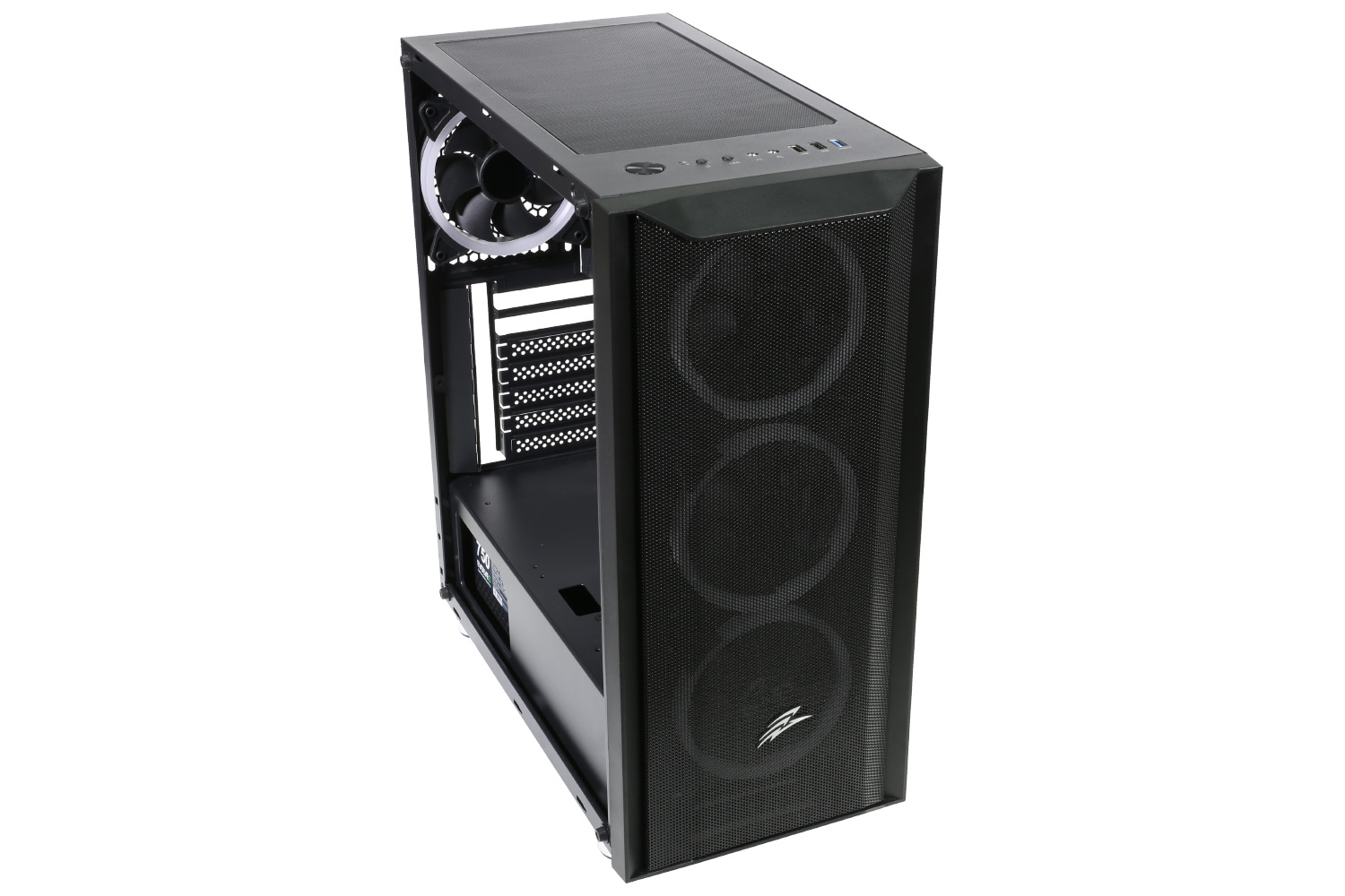 Herní ATX midi tower s instalovanými 4x RGB rainbow 120 mm ventilátory, které se ovládájí pomocí LED tlačítka na horní straně ovládacího panelu. Čelní mřížka přes celý přední kryt zajišťuje efektivní proudění vzduch. Levá strana skříně obsahuje bočnici z tvrzeného skla. Skříň je určená pro základní desky podporující platformu Intel i AMD. Mimo formátu ATX je kompatibilní i s formátem Micro ATXa Mini ITX. Napájecí zdroj se umísťuje do dolní části skříně. Spodní mřížka je osazena vysouvacím prachovým filtrem, horní prachový filter je uchycený magnety a je odnímatelný.