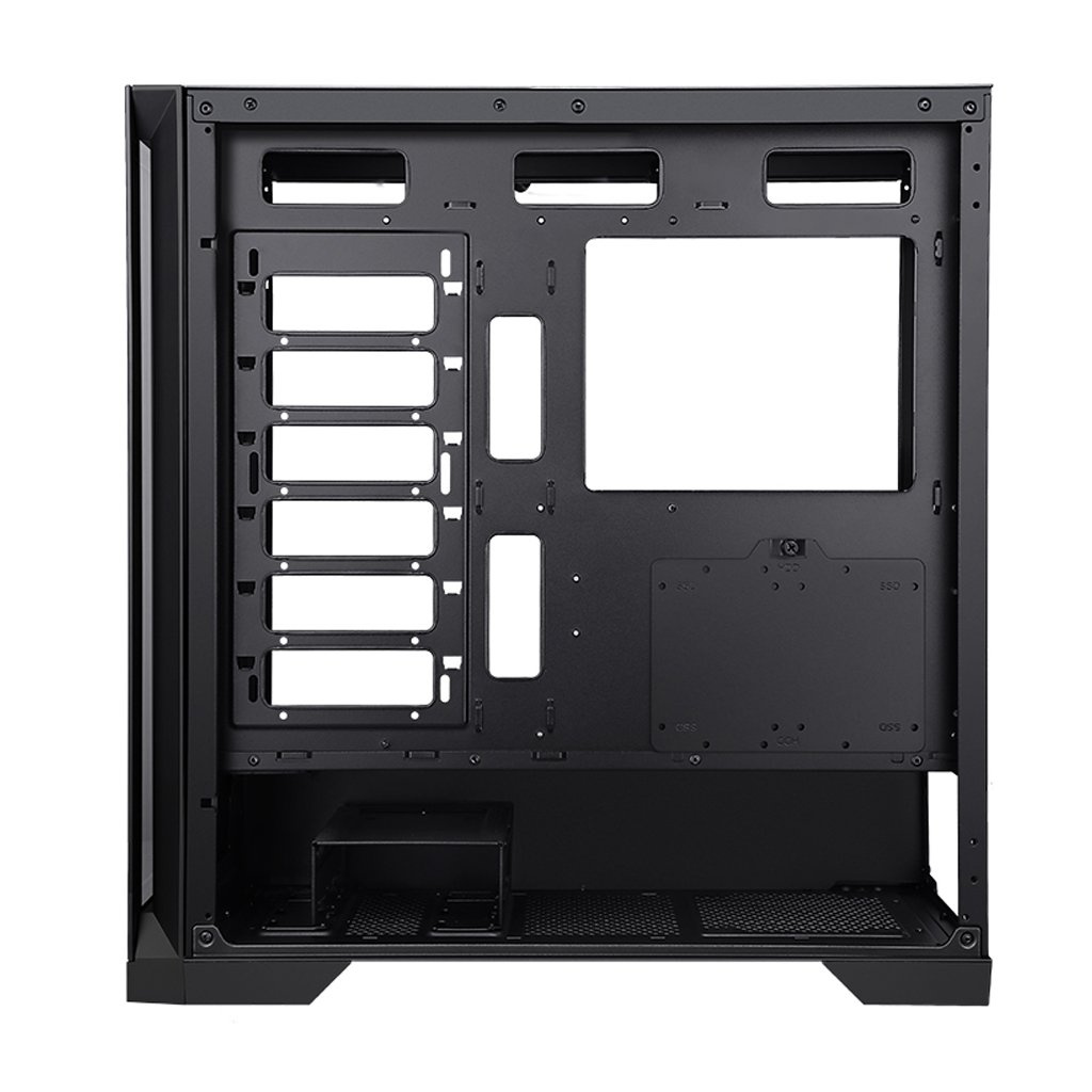 Levá strana PC skříně obsahuje bočnici z tvrzeného skla. Skříň je určená pro základní desky podporující platformu Intel i AMD. Mimo formátu ATX je kompatibilní i s formátem Micro ATXa Mini ITX. Napájecí zdroj se umísťuje do dolní části skříně. Spodní mřížka je osazena vysouvacím prachovým filtrem, horní prachový filtr je uchycený magnety a je odnímatelný. Ventilátory mají 4pin s MOLEX konektory a připojují se vzájemně na sebe bez nutnosti jakéhokoliv řadiče. Ovládání ventilátorů je možné pouze pomocí LED tlačítka na kontrolním panelu skříně.