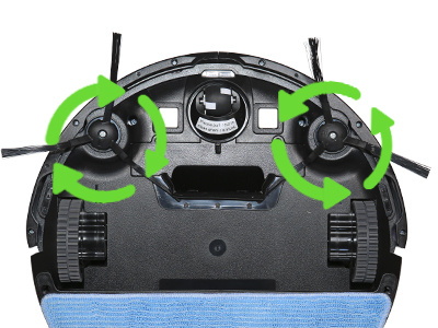 Díky přítomnosti bočního kartáčku vyčistí Robotrex H6 i místa okolo nábytku, podél stěn, rohy místností a jiná těžko dostupná místa. Dvojice proti sobě rotujících kartáčů, které jsou umístěny v čisticí hlavě robota velmi efektivně sbírají prach i velké nečistoty z podlahy.