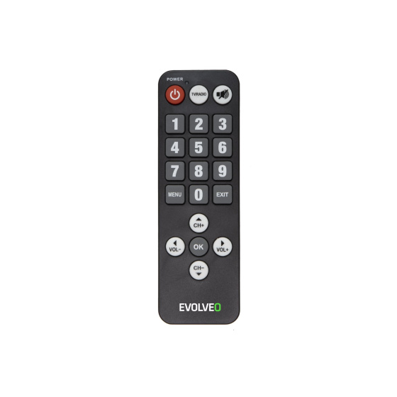 EVOLVEO seniorský dálkový ovladač pro Alpha T2 a Omega II Seniorský dálkový ovladač má velká písmena a je vybaven pouze základními funkcemi. Jeho používání je velmi jednoduché a díky velkým tlačítkům je vhodné hlavně pro seniory. Je určen pro přístroje Alpha T2 a Omega II a umožňuje současné používání s původním dálkovým ovladačem.