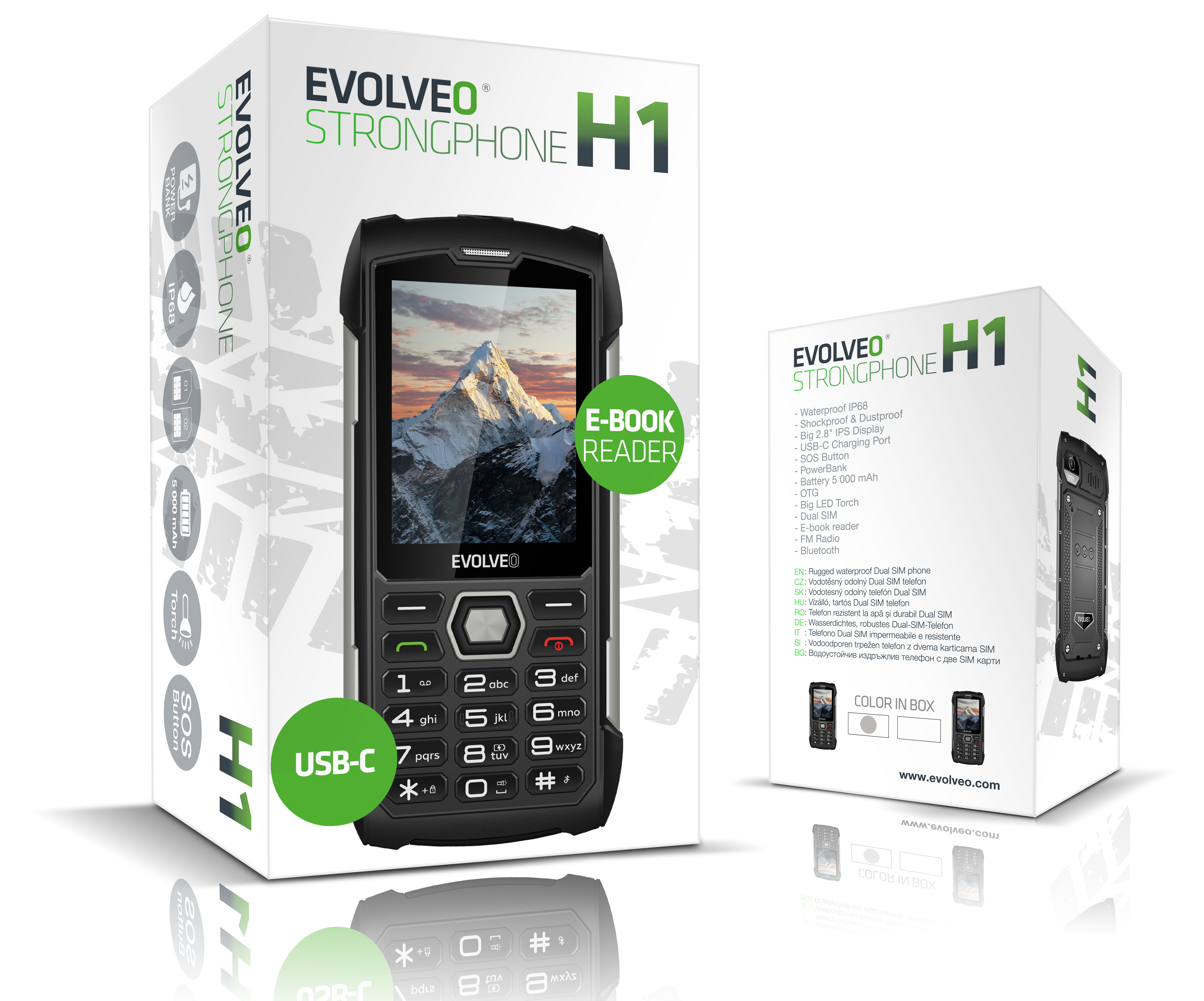 Popis EVOLVEO StrongPhone H1, vodotesný odolný Dual SIM telefón, čierna-šedá
