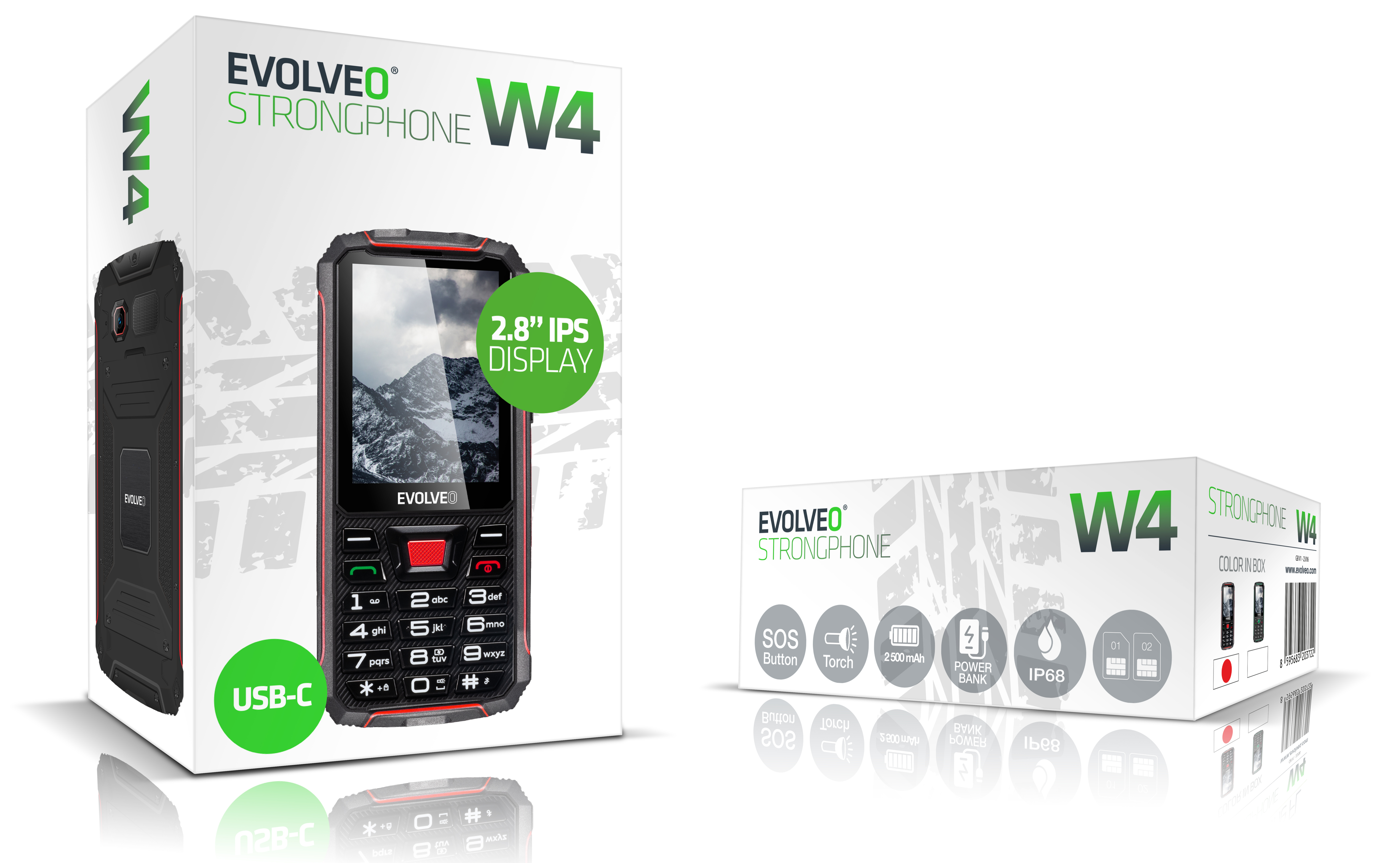 • EVOLVEO StrongPhone W4, vodotěsný odolný Dual SIM telefon, černo-červený (PartNo: SGP-W4-BR)