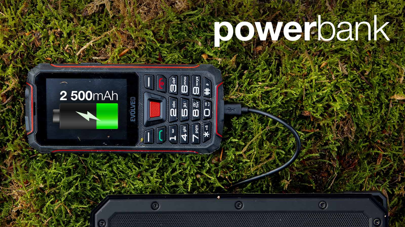 Baterie o kapacitě 2 500 mAh zajistí provoz telefonu až na dva týdny a umí i něco navíc. Odolný telefon StrongPhone W4 je vybaven funkcí powerbanky, která umožní využít kapacitu baterie pro dobíjení vašich dalších zařízení.