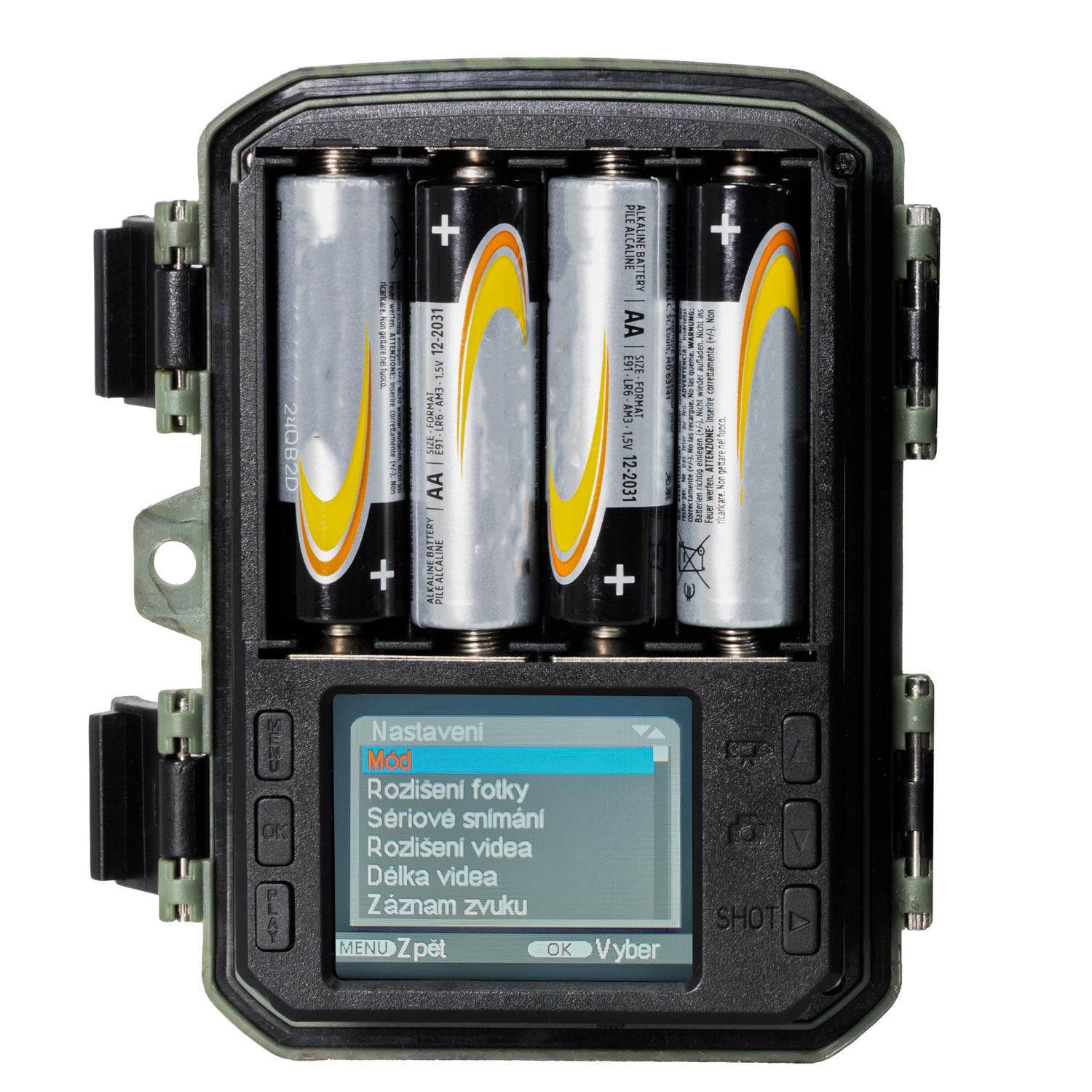 Velkým benefitem je plně lokalizované menu v češtině, díky čemuž je nastavení intuitivní a bez nutnosti studovat manuál. Ovládání probíhá přes /b> 2" barevný LCD displej, který zobrazuje živý náhled i náhled pořízených fotografií a videí. Díky jednoduchému rozhraní zvládne zařízení používat každý – od myslivců po správce objektů. Přístup k nastavení záznamu, režimů, časovače nebo kvality záznamu je okamžitý. Záznamy lze přehrávat přímo na displeji, což šetří čas při kontrole dat. Kamera podporuje také časosběrné (time-lapse) snímání, které lze využít např. pro sledování růstu plodin nebo stavby. Vše je navrženo pro snadnou obsluhu v terénu bez složitostí.