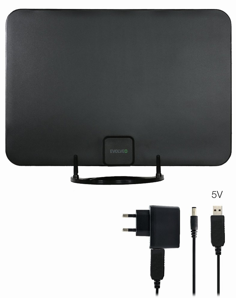 Elegantná domáca anténa na príjem digitálnej aj analógovej TV. Zosilňovač antény je možné napájať dvoma spôsobmi pomocou USB kábla. Napájanie pomocou adaptéra 230V a ďalej napájanie z USB konektora. Druhý spôsob ocení používateľ, ktorý chce sledovať TV napríklad na NB pomocou USB tuneru. Anténu je možné prilepiť sadou 3M obojstranných pásikov na stenu, nábytok, alebo umiestniť do podstavca.