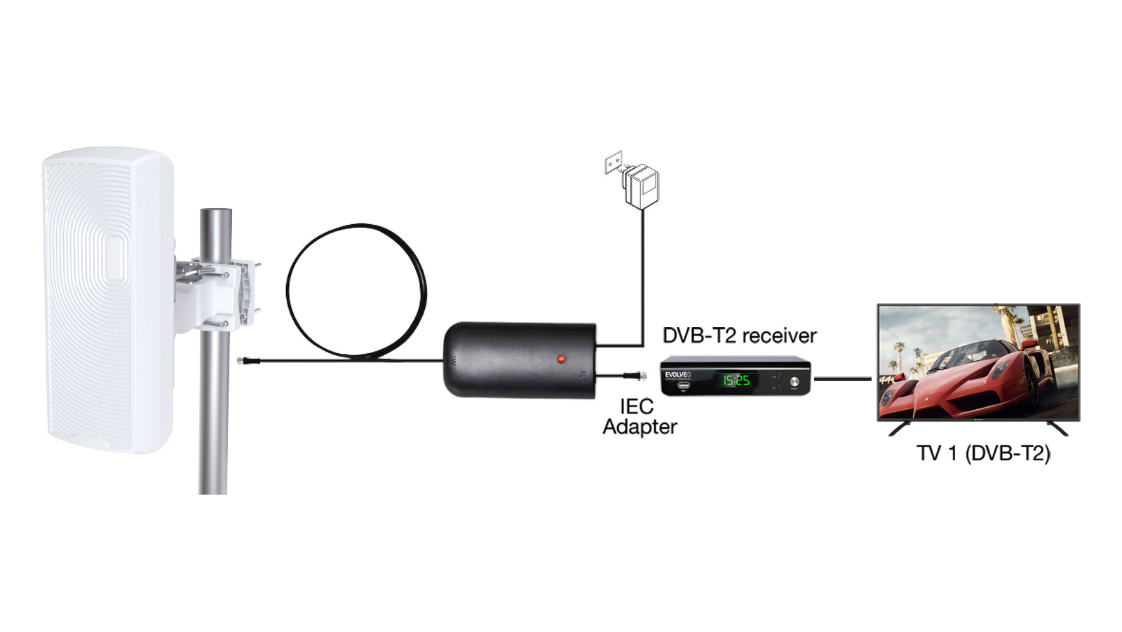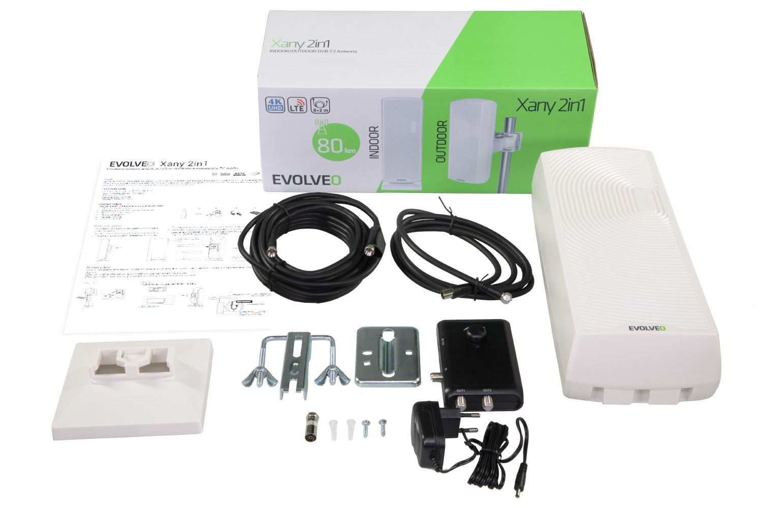 Popis EVOLVEO Xany 2in1, aktívna vonkajšia/izbová anténa FM/DAB+/DVB-T2, filter LTE,4G,5G