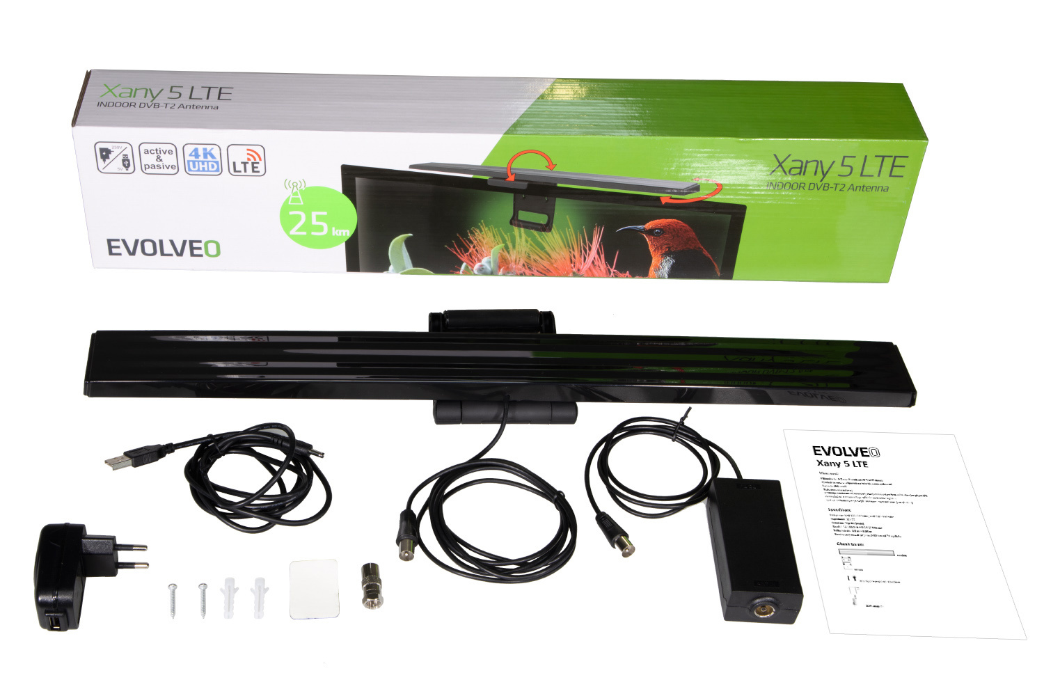 EVOLVEO Xany 5 LTE, 230/5V, aktívna izbová anténa DAB+/DVB-T2, filter LTE