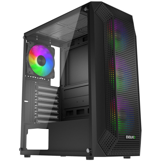 EVOLVEO Xenon, skříň ATX, 4x ARGB ventilátor 120mm, přední panel airflow mesh, černá