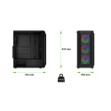 • Midi Tower • ATX, mATX, mITX • Mesh čelní panel s nacvakávacím mechanismem • Bočnice z temperovaného skla • 4x Ventilátory ARGB 120 mm • Dva prachové filtry • VGA max. 330 mm • CPU max. 170 mm • 2x 3,5"HDD, 3x 2,5"SSD • 3x USB, 2x Jack