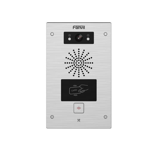 i32V SIP video vrátný je určen pro venkovní prostředí s vysokou spolehlivostí, HD Audiem/Videem, stupněm krytí IP65/IK10 a širokým teplotním rozsahem od -40 do 70 stupňů Celsia. Kombinuje funkce zabezpečení, interkomu, broadcasting, řízení přístupu s HD zvukem pro hladkou, bezpečnou a jasnou komunikaci. Podporuje otevírání dveří pomocí RFID/IC karet, dálkově pomocí DTMF a vnitřního spínače.