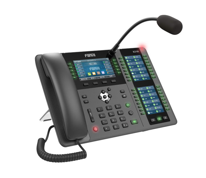 Telefon Fanvil X210i je prezentován jako paging konzole pro průmyslové zákazníky. Je vybaven mikrofonem s husím krkem a podporuje HD handsfree volání. S inteligentními programovatelnými DSS tlačítky můžete sestavit hovor jedním kliknutím a zlepšit efektivitu komunikace. Je kompatibilní se standardním SIP protokolem a lze jej také použít jako monitorovací centrum nebo řídící centrum pro kancelářského manažera s funkcemi, jako je volání na externí a interní telefony, obousměrný interkom, monitorování a broadcasting. X210i zlepšuje efektivitu managemntu a schopnosti reakce na nouzové situace . Profesionální směrový mikrofon s husím krkem nabízí zvuk s dobrou reprodukcí, vysokým rozlišením a nízkou hlučnostíNově přidaná podpora pro Opus a větší audio dutina přinášejí bohaté basy a silný zvukový efekt. Hlasitý odposlech poskytuje křišťálově čistou hlasovou komunikaci jako při osobním setkání. Díky jedinečnému dizajnu a pohodlnému ovládání X210 s dvěma bočními displeji a s DSS tlačítky, není třeba přidávat externí rozšiřující moduly. Se třemi tlačítky pro přepínání stránek umožňují boční displeje nastavit až 96 DSS tlačítek (32 fyzických) a plus 10 DSS tlačítek na hlavním displeji je celkem k dispozici až 106 DSS pro nastavení BLF, rychlé volby, broadcasting atd. Bohaté rozšiřující funkce X210 nabízí řadu možností připojení zařízení včetně Wi-Fi (přes Wi-Fi dongle), integrovaného Bluetooth, EHS náhlavních souprav, USB portu pro nabíjení smartphonu nebo jiných zařízení. Dva gigabitové porty vám umožní připojit váš stolní počítač nebo notebook k telefonu bez nutnosti další kabeláže. Broadcast příkazy jsou posílány okamžitě na koncová zařízení. Každá Broadcast skupina se zobrazuje na DSS obrazovce,můžete stisknout DSS tlačítko pro výběr broadcast skupiny vysílání a pomocí mikrofonu s husím krkem vytvořit „one-on-one“ nebo „one-to-many“ bradcast hovor pro emergency upozornění.Toto je vhodné řešení pro místa, kde je potřeba koordinace pracovních vztahů.