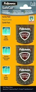 Rotační nástroje určené pro řezačky Fellowes Electron, Proton a Neutron. Sada obsahuje jeden rotační nůž s řezem „vlnky“, jeden nástroj pro rýhovaní papíru a jeden nástroj pro perforaci.