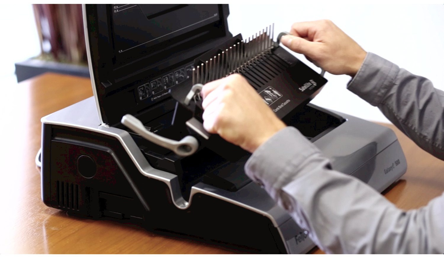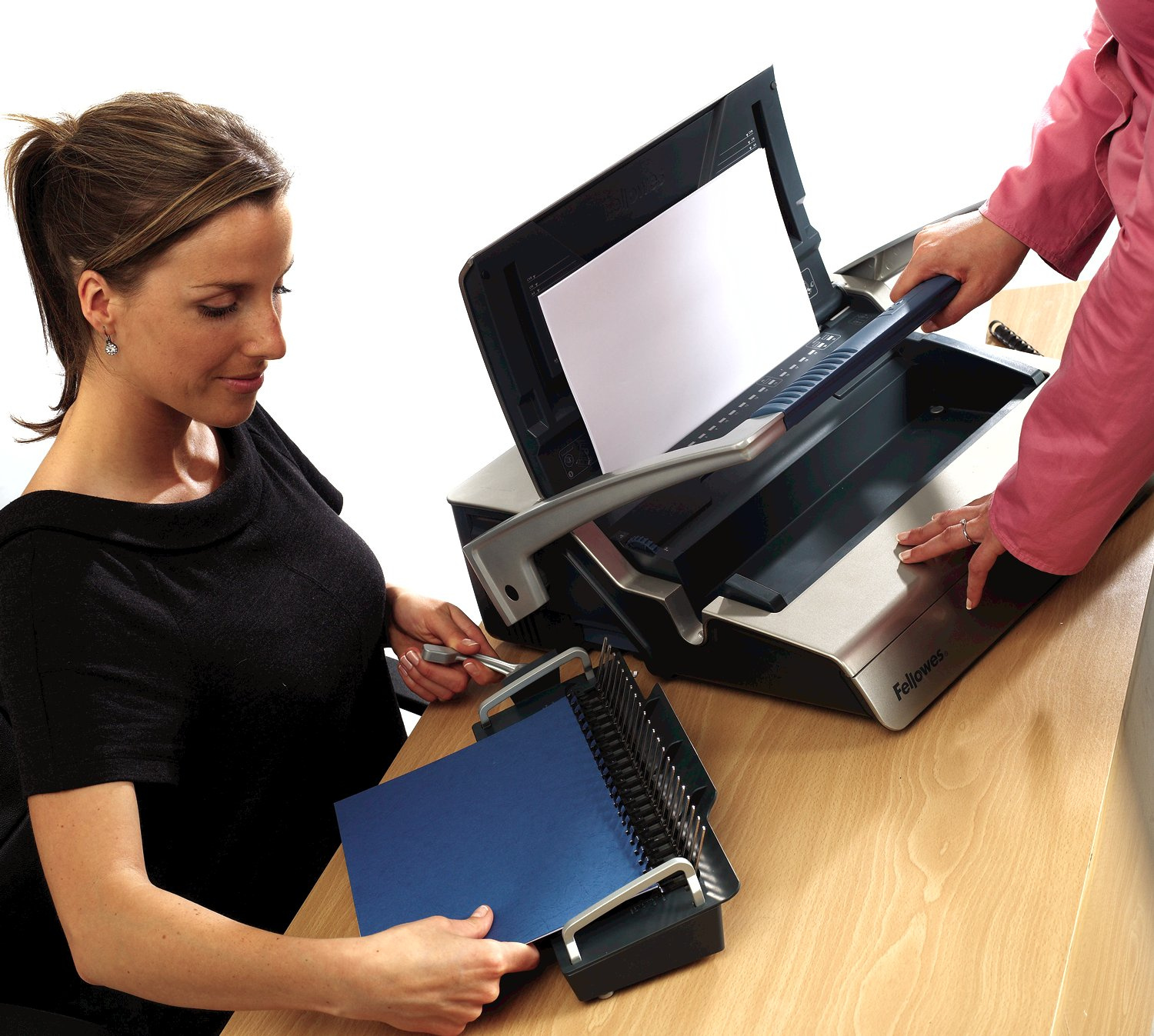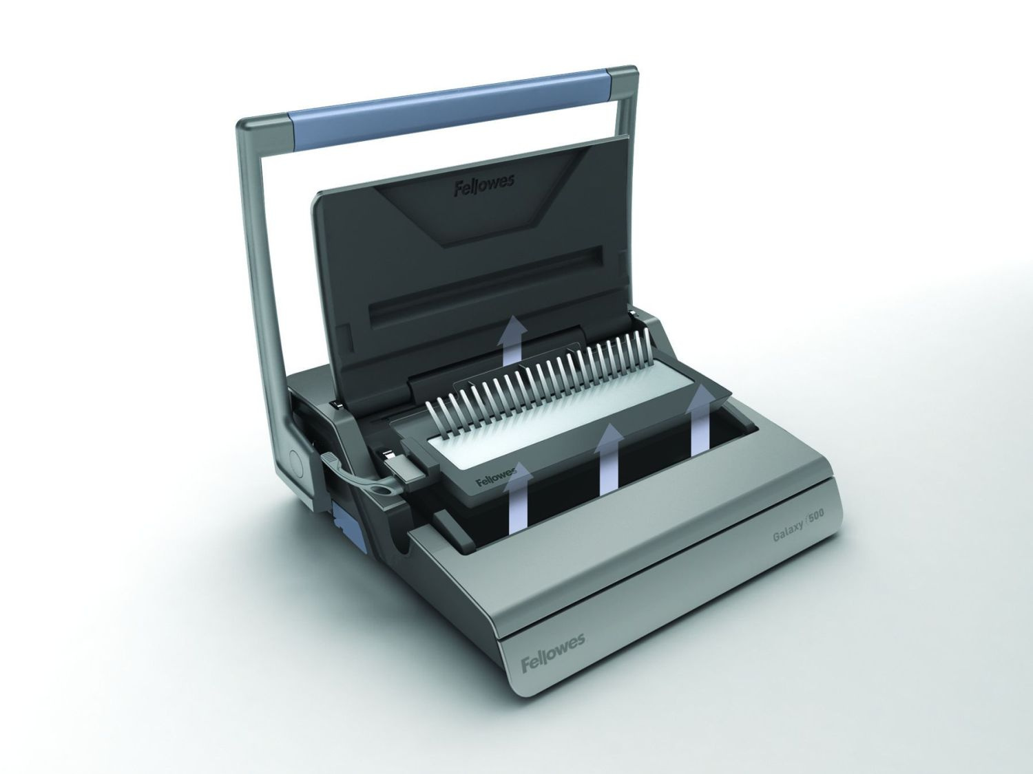 Jedinečné provedení robustního vázacího stroje s uživatelsky samostatně provozovatelnou vázací jednotkou nabízí model Fellowes Galaxy. Děrovací kapacita až 28 listů 80 g papíru. Kapacita vazby až 500 listů (do průměru hřbetu 50 mm). Možnost nastavení vzdálenosti děr od okraje svazku. Vyřaditelné perforační nože (pro formát A5).