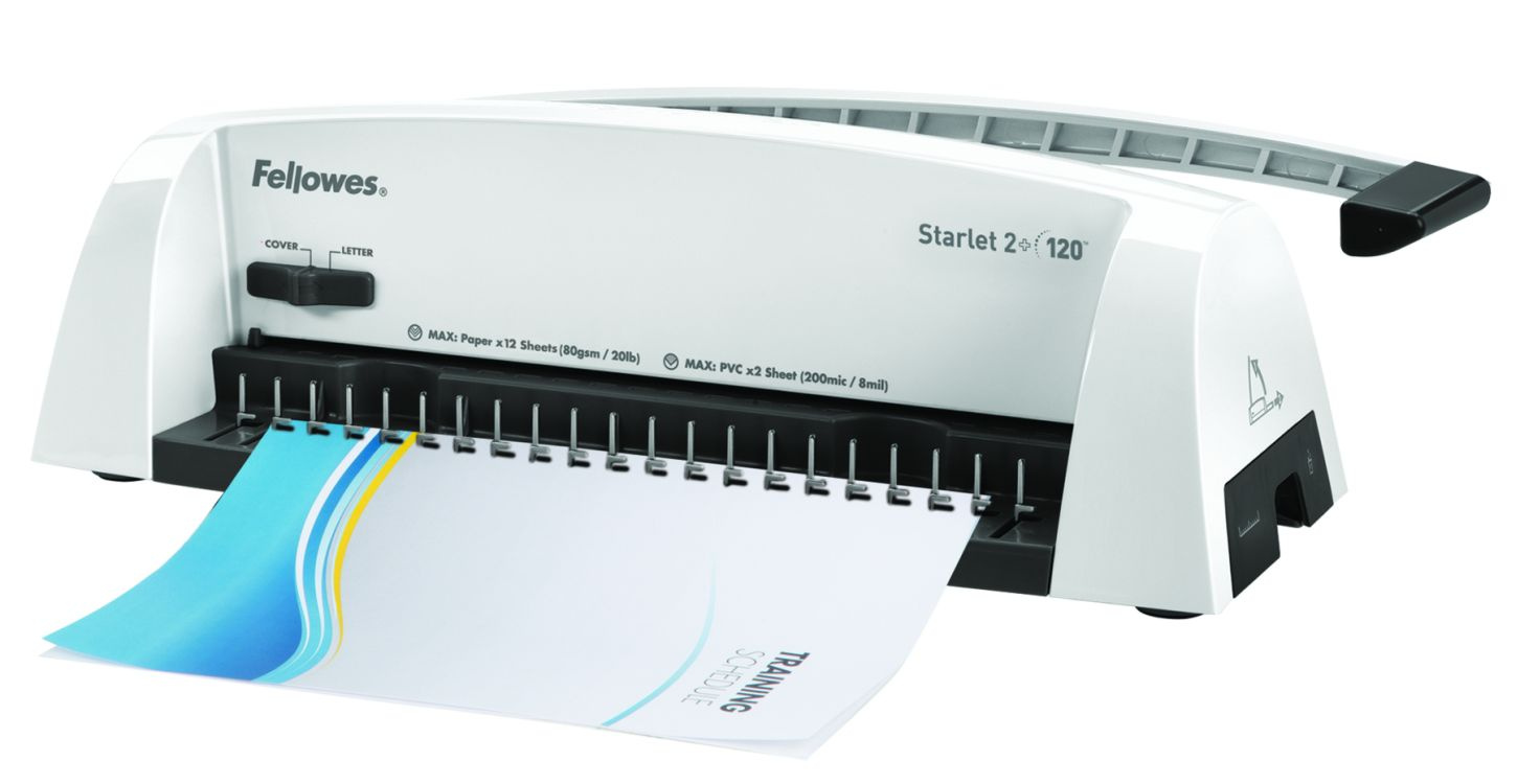 Základní model nové designové řady vázacích strojů Fellowes pro příležitostnou vazbu. Děrovací kapacita až 12 listů 80 g papíru. Kapacita vazby až 120 listů (do průměru hřbetu 16 mm). Vazač má dvě přednastavené pozice – pro děrování formátu A4 a A5.