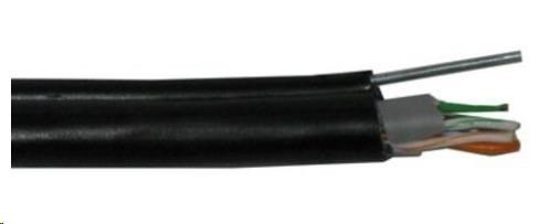 FTP kabel PlanetElite s nosným lankem, Cat5E, drát, venkovní PE+PVC, Fca, černý, 305m