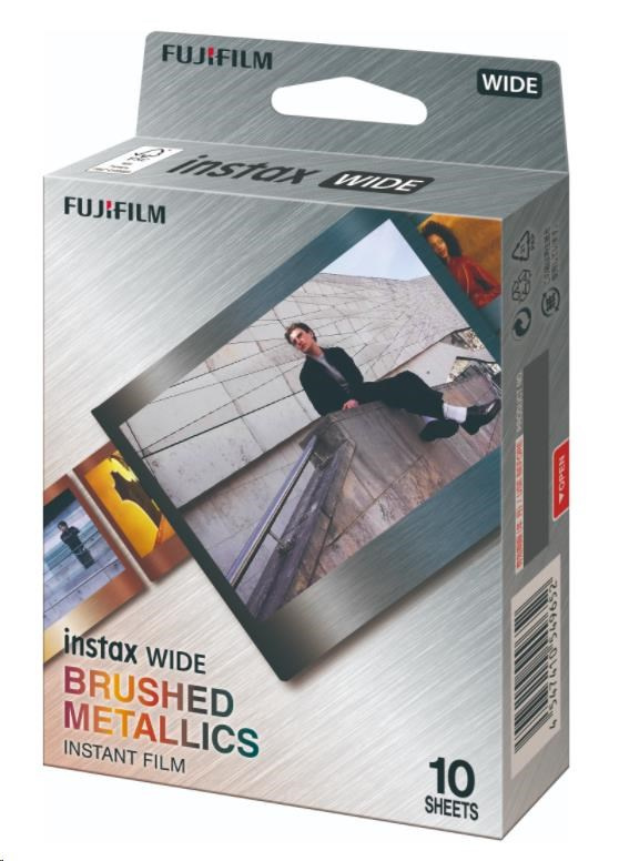 Film instax ™ WIDE Brushed Metallics má rámik pripomínajúci kovový vzhľad s tmavým gradientom. Film je dostupný v balení po 10 expozícií a je použiteľný vo všetkých instantnýchi fotoaparátoch instax ™ WIDE a tlačiarňach k smartfónom instax Link WIDE™..