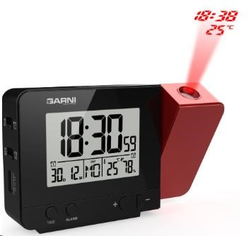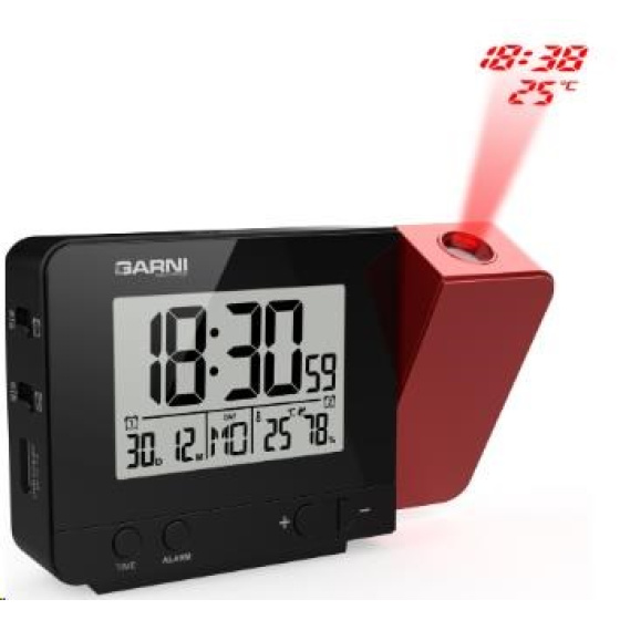 Digitálny budík s projekciou času a vnútornej teploty s LCD displejom, časom riadeným rádiovým signálom DCF-77 a meraním vnútornej teploty a relatívnej vlhkosti LCD displej o rozmere 63 x 42 mm s možnosťou stálého osvetlenia pri napájaní sieťovým adaptérom, alebo krátkodobým osvetlením na 8 s pri napájaní batériami 3 stupne jasu osvetlenia displeja, možnosť vypnutia osvetlenia displeja (pri napájaní sieťovým adaptérom) veľkosť číslic na displeji – čas 25 mm, dátum, skratka názvu dňa, vnútorná teplota a rel. vlhkosť 8,5 mm čas a dátum riadené signálom DCF-77 s možnosťou manuálneho nastavenia ikona príjmu signálu DCF-77 skratka názvu dňa 12-hodinový alebo 24-hodinový formát zobrazenia času možnosť nastavenia časového pásma od -12 do +12 hodín budík s 2 budícími časmi s funkciou opakovaného bdenia (Snooze) po 5 minútach budící signál - 10 sekúnd 1 pípnutie za sekundu, 10 sekúnd 2 pípnutia za sekundu, 10 sekúnd 4 pípnutia za sekundu a potom stály pípací zvuk projekcia času a vnútornej teploty s možnosťou otočenia obrazu o 180°, možnosť sklopenia tubusu projektora o 90° dopredu a dozadu farba projekcie červená stále projekcie pri napájaní sieťovým adaptérom s možnosťou vypnutia zobrazenie hodnôt vnútornej teploty a relatívnej vlhkosti zobrazenie teploty vo °C, alebo °F USB port na nabíjanie mobilných zariadení (len pri napájaní hlavnej jednotky sieťovým adaptérom), maximálny nabíjací prúd 1 000 mA napájanie sieťovým adaptérom, alebo batériami možnosť postavenia farba čierna Obsah balenia: 1 x digitálny budík GARNI 140 1 x sieťový adaptér český, slovenský, nemecký, anglický, taliansky, poľský a maďarský návod Popis produktu bol preložený pomocou umelej inteligencie a môže obsahovať nepresnosti.