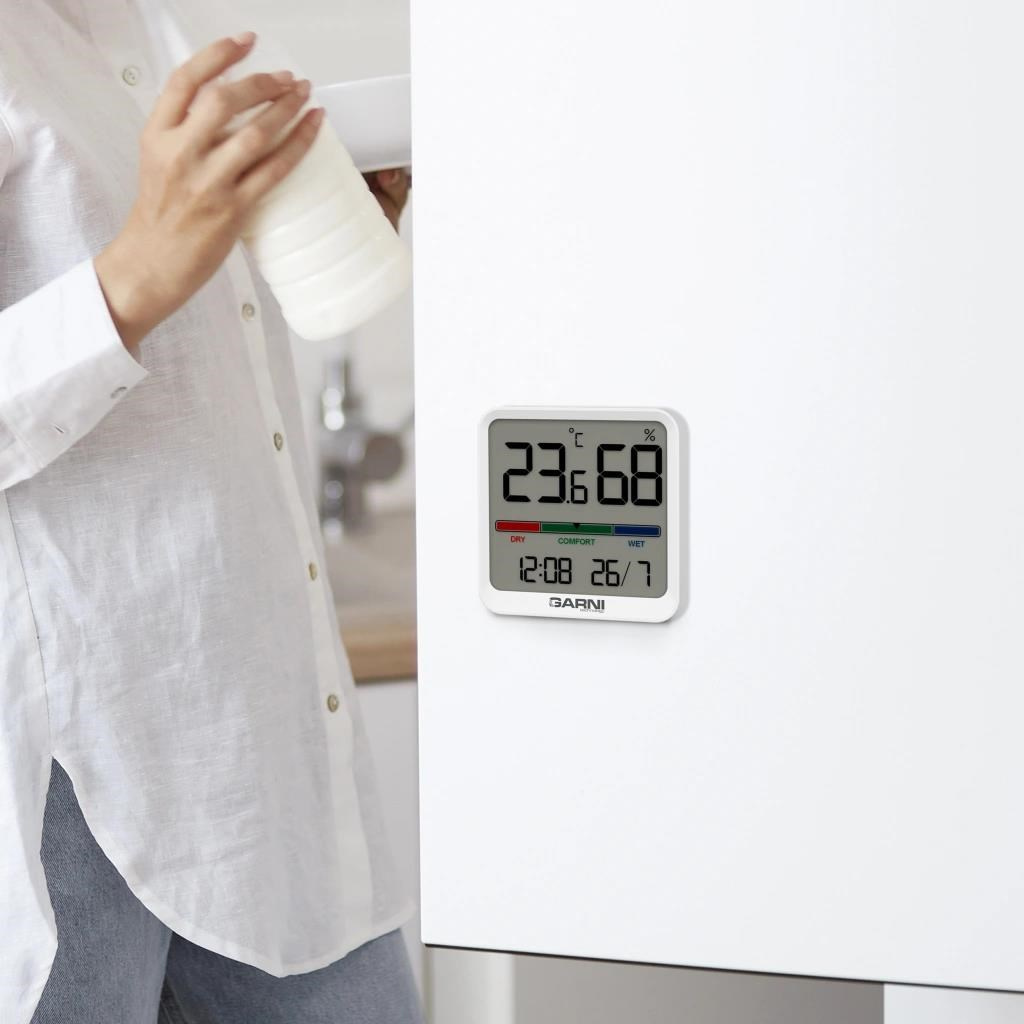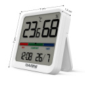 Digitálny teplomer s vlhkomerom na meranie teploty a relatívnej vlhkosti v interiéri. Zobrazenie času a dátumu.