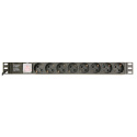 Power distribution unit (PDU), 8 Schuko sockets, 1U, 10A, C14 plug 3 m cable *8 x zásuvky typu Schuko *Zásuvky s bezpečnostními clonkami *Možnost montáže do racku 1U