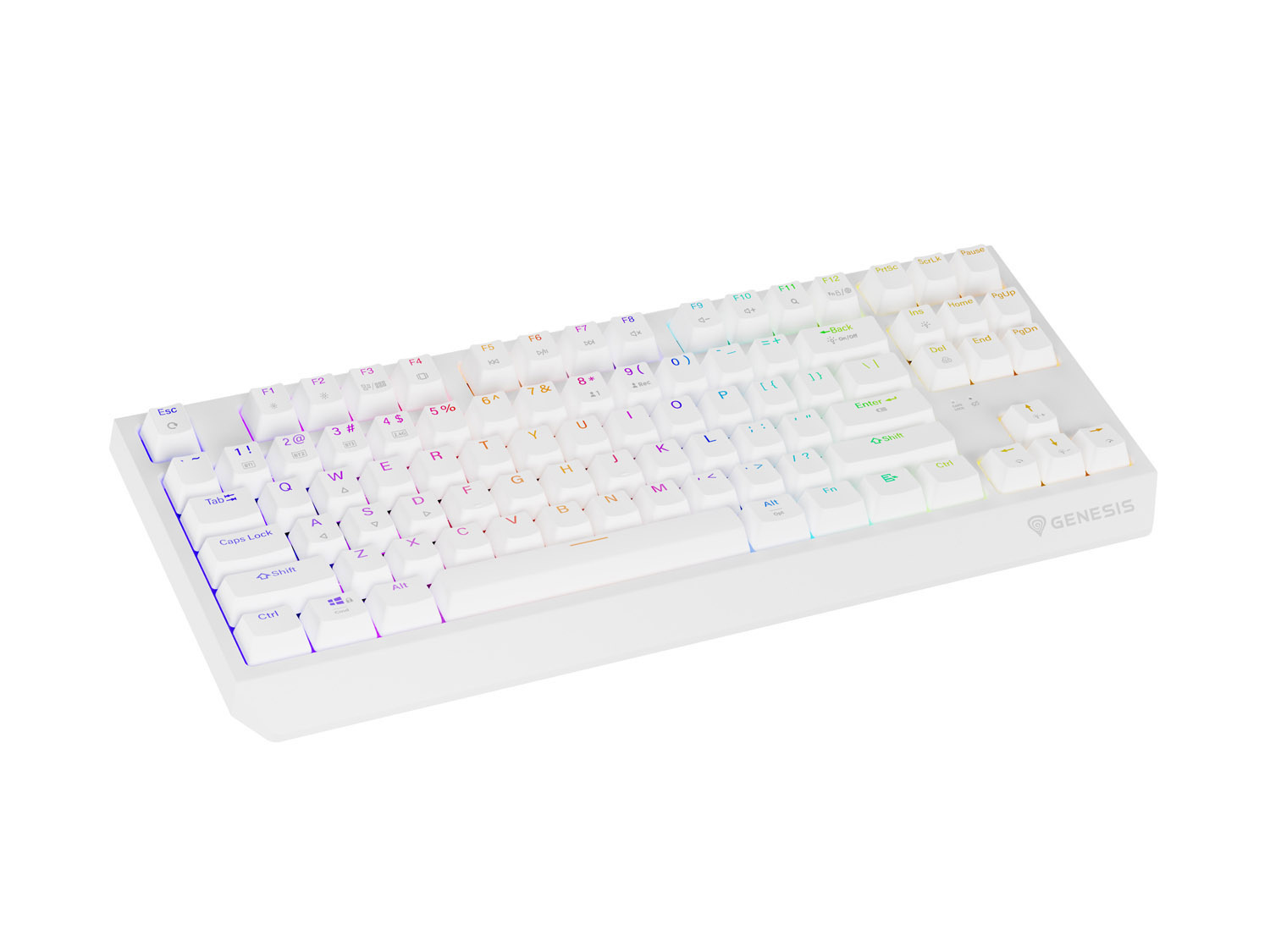 Popis GENESIS herná klávesnica THOR 230/TKL/RGB/Outemu Red/Bezdrôtová USB + Bluetooth/US layout/Biela