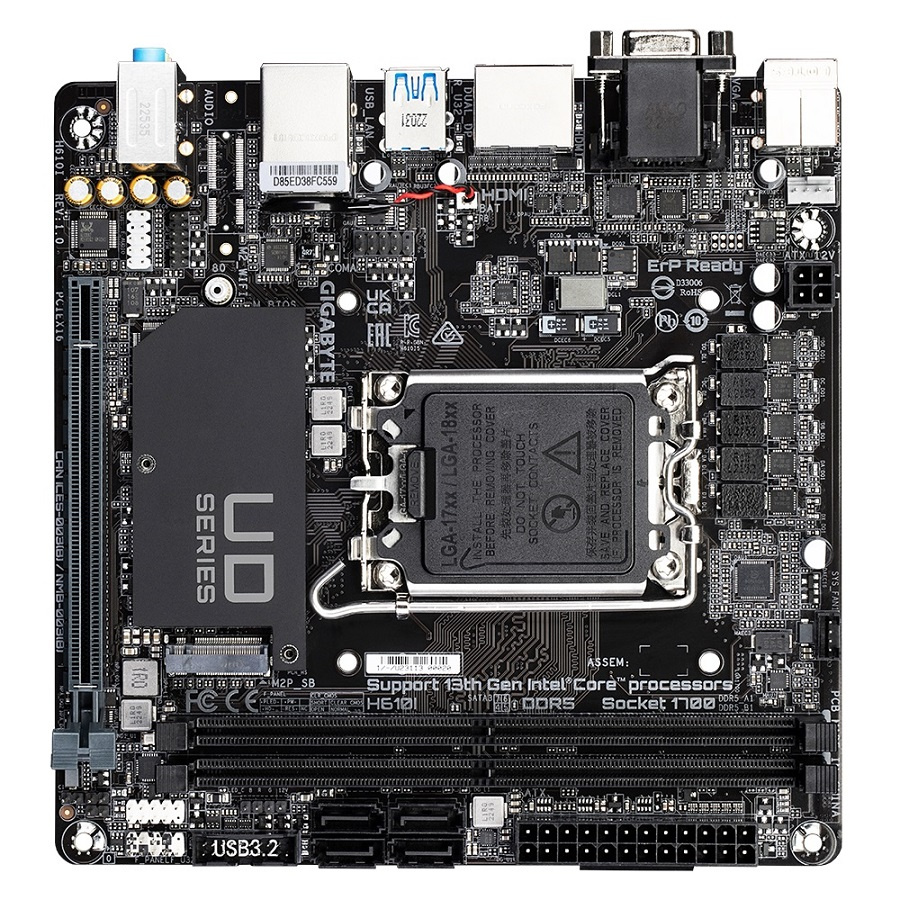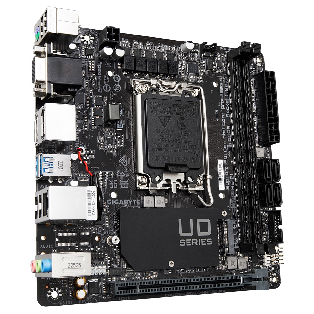 Chipset: Intel® H610 Express Rozměrový formát: Mini-ITX (170x170mm) Podpora pro procesory: 14., 13. a 12. generace Intel® Core™, Pentium® Gold a Celeron® Patice procesoru: LGA1700