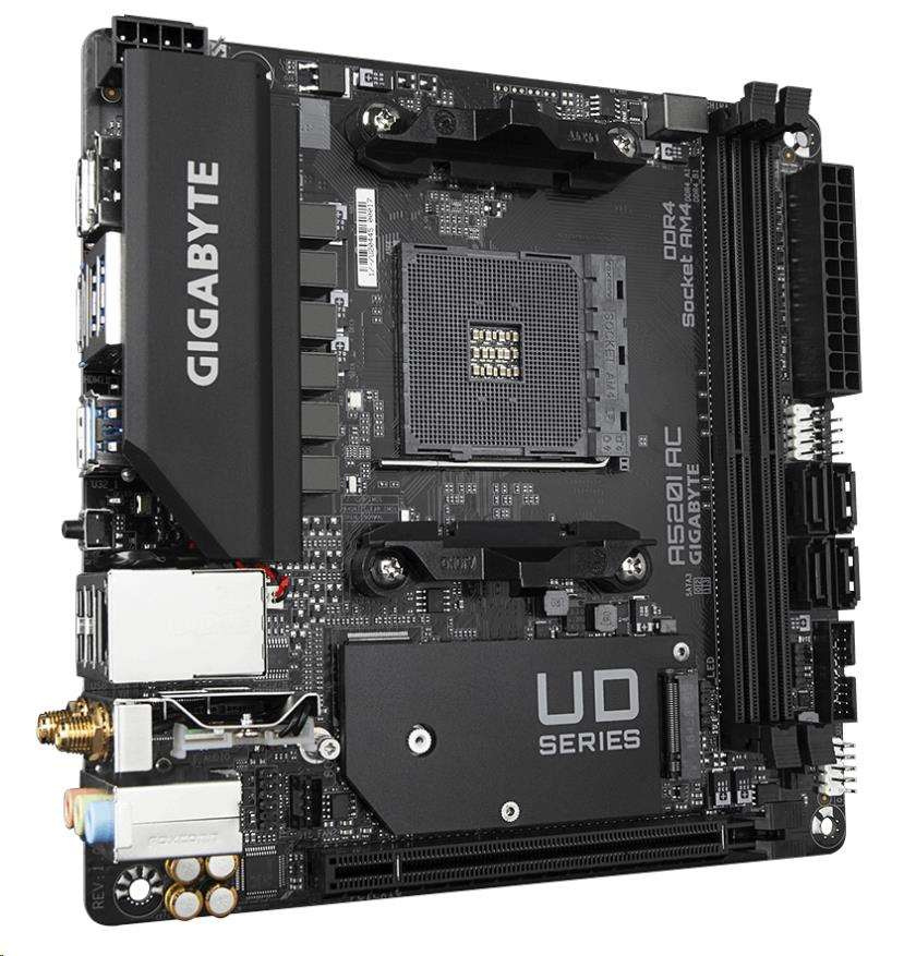 Popis GIGABYTE MB Sc AM4 A520I AC, AMD A520, 2xDDR4, 1xDP, 2xHDMI, WI-FI, Mini-ITX