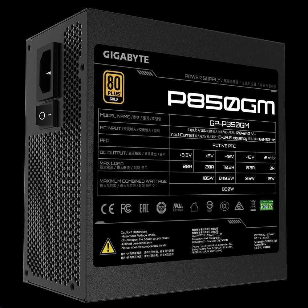 Popis Napájací zdroj GIGABYTE P850GM, 850W, 80plus gold, modulárny, 120 mm ventilátor