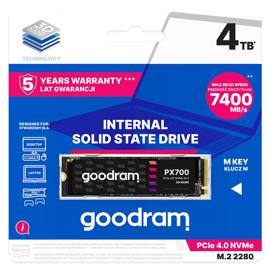 Goodram PX700 PCIe Gen 4 x4 NVMe patrí k najnovšej generácii SSD diskov, ktoré ponúkajú bezkonkurenčný výkon a kompatibilitu. Vďaka svojmu univerzálnemu formátu možno disk PX700 použiť v širokej škále aplikácií, kde je rozhodujúca rýchlosť, výkon a šírka pásma.