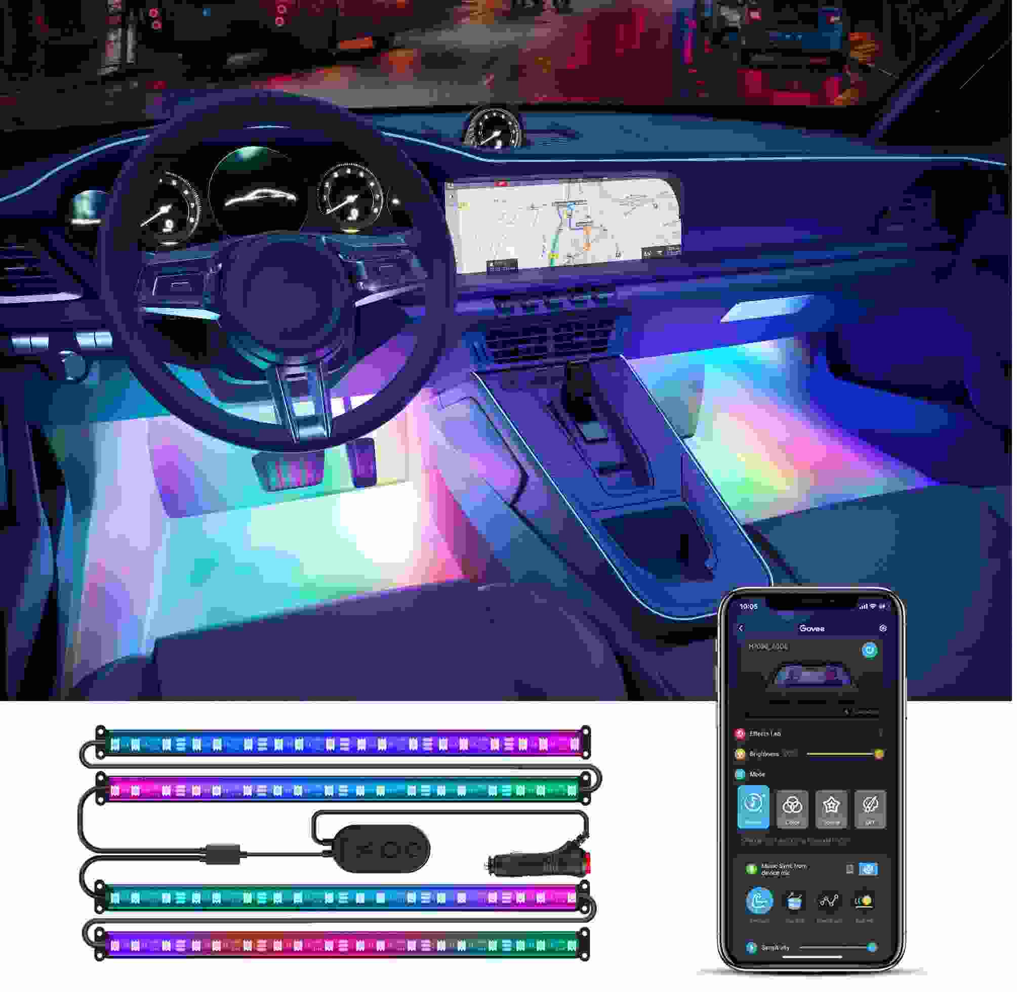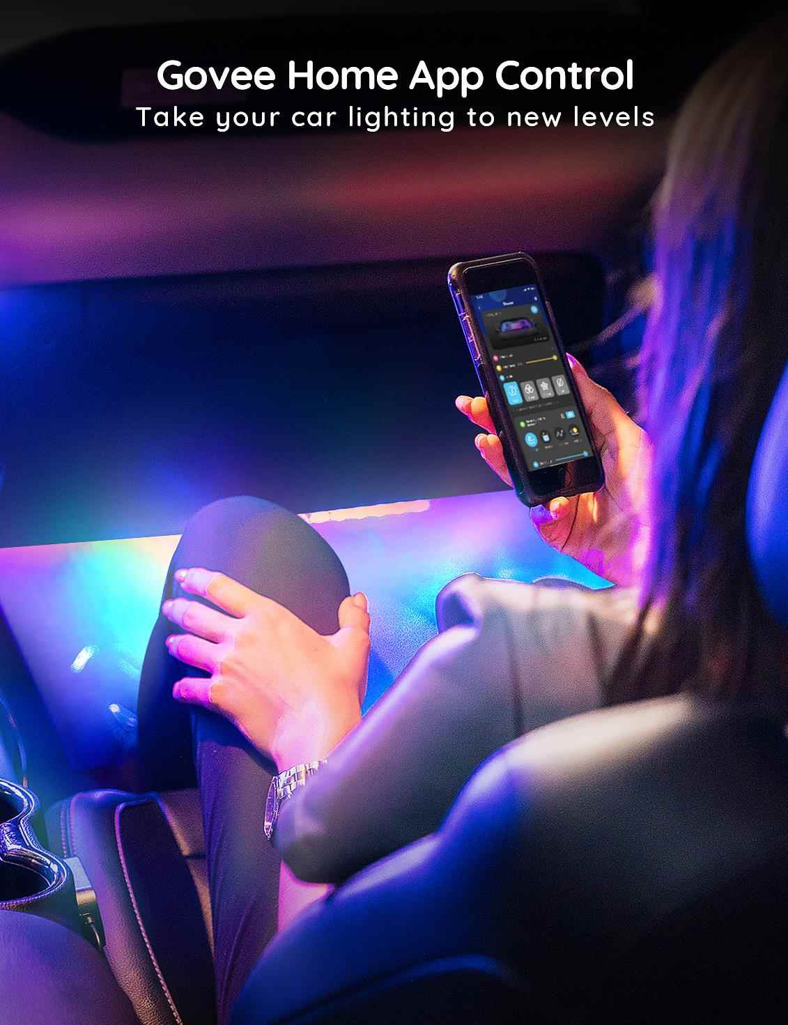 Energeticky úsporný interiér inteligentné LED pásiky Govee Smart RGBIC pre autá so životnosťou až 50 000 hodín vylepšia interiér vášho auta a poskytnú zážitok, ktorý sa vyskytuje v luxusných autách. Môžete ich použiť prakticky kdekoľvek, kde je zapaľovanie. Zobrazuje až 16 miliónov farieb, ktorých intenzitu je možné nastaviť od 1 do 100 %. Vďaka technológii RGBIC môžete pásik rozdeliť na samostatné segmenty, pre ktoré si potom môžete vybrať rôzne farby. Vyberte si z 30 režimov svietenia a svetlá sa synchronizujú pri počúvaní obľúbenej hudby. Alebo si jednoducho nastavte vlastné farebné kombinácie v režime DIY. Príkazy môžete zadávať prostredníctvom aplikácie Govee Home na svojom smartfóne alebo tablete alebo priamo na Control Boxe. Inštalácia je jednoduchá a je rozdelená na prednú a zadnú časť vozidla.