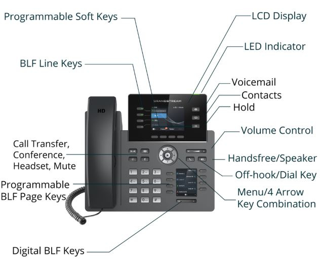 Grandstream GRP2614, 2.8" TFT bar. disp., 4SIP úč., 8prog. hr., 40virt. BLF hr., BT, dual Gbit