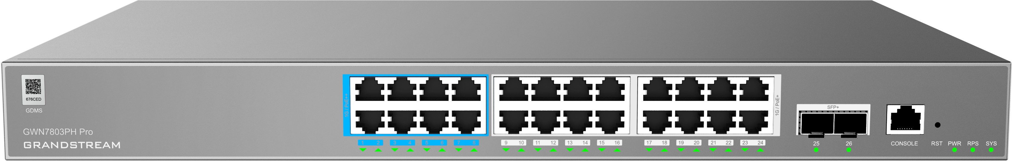 Popis Grandstream GWN7803PH Pro L2++, Managed switch, 24x 1Gb RJ45, PoE, SFP+