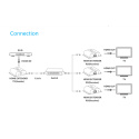 - Extender umožňuje použití jednoho vysílače a více přijímačů vzájemně propojených pomocí LAN sítě, switchů a routerů (otestováno na FULL HD 1080p a 100m kabelu + swich + 2 přijímače) tato počítačová síť musí být vyhrazena pouze pro HDMI extendery, nesmí sdílet další počítače, tiskárny a jiná síťová zařízení.