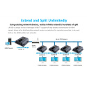 Zařízení umožňuje po jednom síťovém kabelu nebo prostřednictvím LAN sítě přenést HDMI FULL HD signál až na 120m.