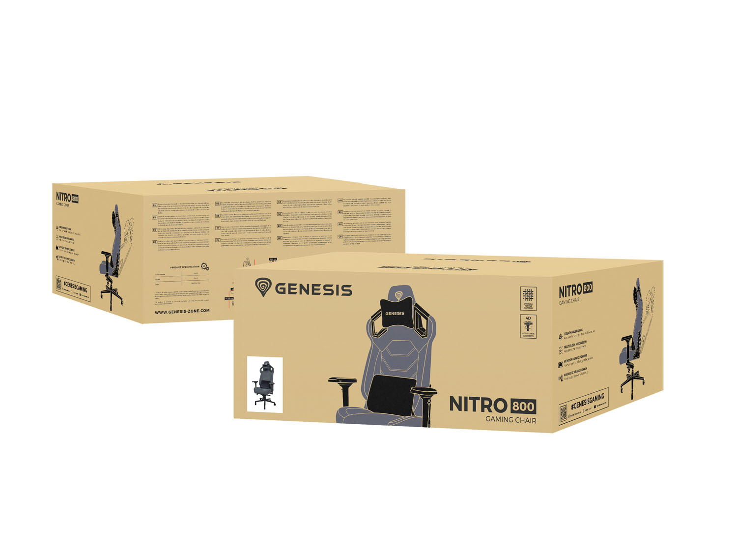 GENESIS Nitro 800 je židle určená pro hráče, kteří si potřebují plně přizpůsobit židli pro maximální pohodlí a oporu zad. Díky použití moderních materiálů nejvyšší kvality se jedná o výrobek, který kombinuje pohodlí s v tomto cenovém segmentu nesrovnatelnou odolností a zároveň nabízí vynikající oporu těla i během mnohahodinových potyček ve vašich oblíbených hrách.