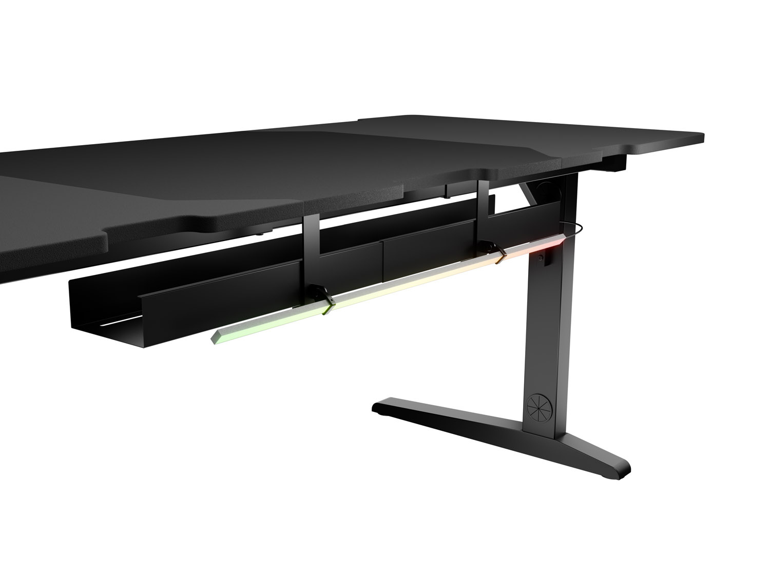 - Pod stolem je expanzivní kabelová přihrádka určená pro velké napájecí lišty.