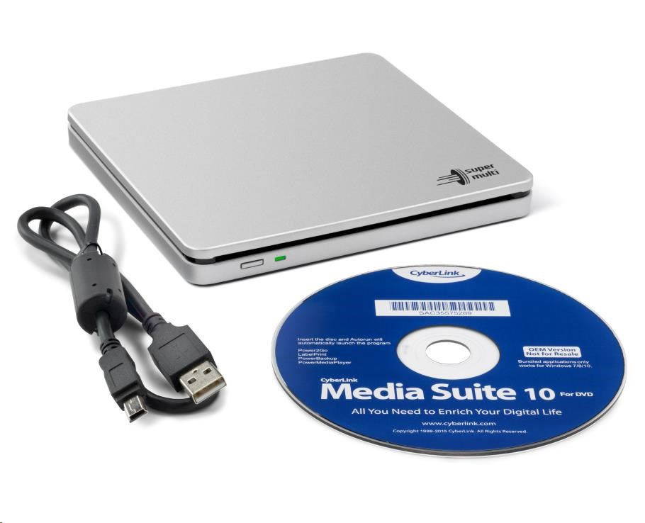 Popis HITACHI LG - Externý DVD-W/CD-RW/DVD±R/±RW/RAM/M-DISC GP70NS50, Blade Ultra Slim, strieborný, krabica+SW