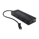 Technické parametry Délka kabelu: 300mm Porty: * 2x SuperSpeed ????USB Type-C® s přenosovou rychlostí 10Gb/s * 1x USB Type-C® s USB Power Delivery a Alt Mode DisplayPort™ * 1x USB Type-C® s USB Power Delivery (65W) Power Delivery (PD): * 20V/3,25A * 15V/12V/10V/3A * 9V/1,25A * 5V/0,1A Síla napájení: až 65W přes USB Type-C® (vyžaduje 90W napájecí adaptér) Barva: černá Rozměry: 116x41,9x15,5mm Hmotnost: 120g