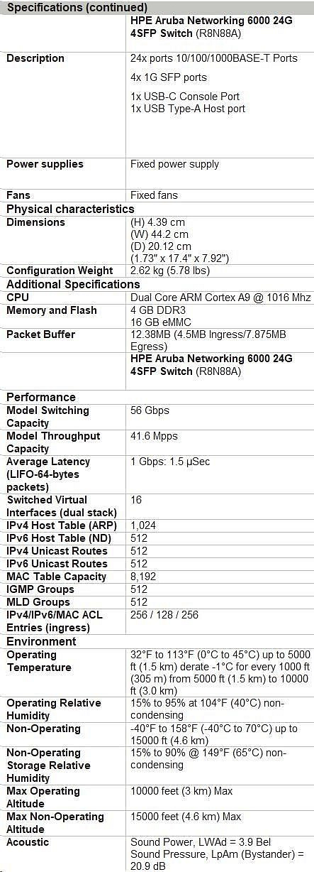HPE Aruba Networking CX 6000 24G 4SFP Switch.