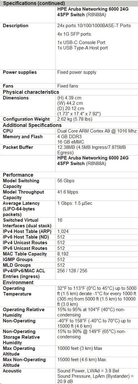 HPE Aruba Networking CX 6000 24G 4SFP Switch R8N88A RENEW