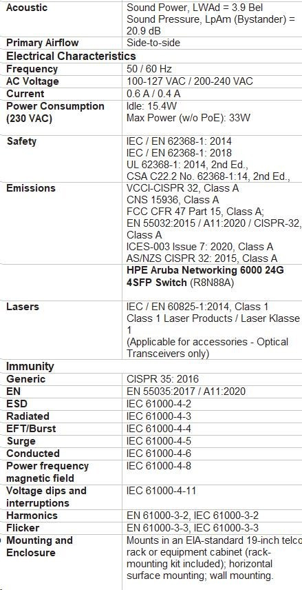 Popis HPE Aruba Networking CX 6000 24G 4SFP Switch R8N88A